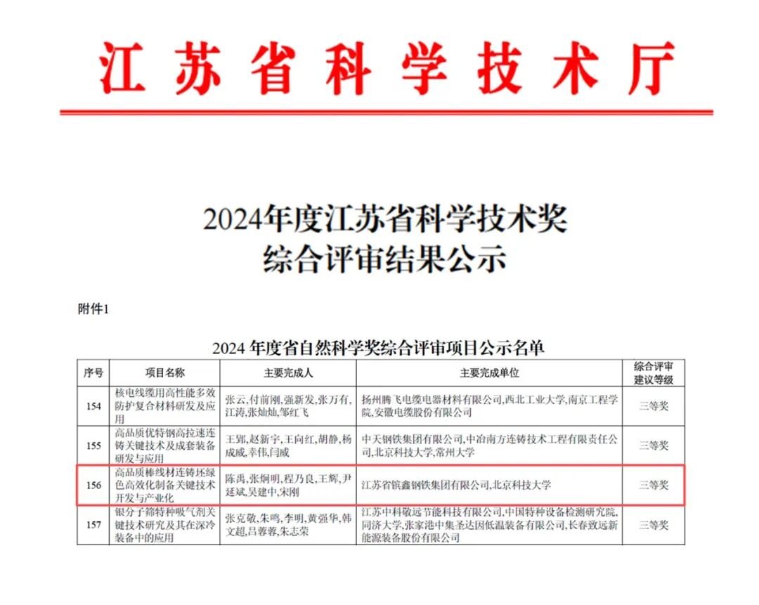 近日,镔钢集团在科技创新领域接连取得重要成果。集团与北京科技大学联合申报的《高品质棒线材连铸坯绿色高效化制备关键技术开发与产业化》项目荣获“2024年度江苏省科技进步三等奖”。同时,镔钢集团申报的2025年连云港市科技计划项目《高品级冷镦钢关键制备技术开发与应用》及“连云港市高端钢铁材料制备重点实验室”创新能力建设项目顺利通过公示,实现省级荣誉与市级平台建设的双重突破,充分展现了公司在产品转型升级和高质量发展方面的研发实力与坚定决心。