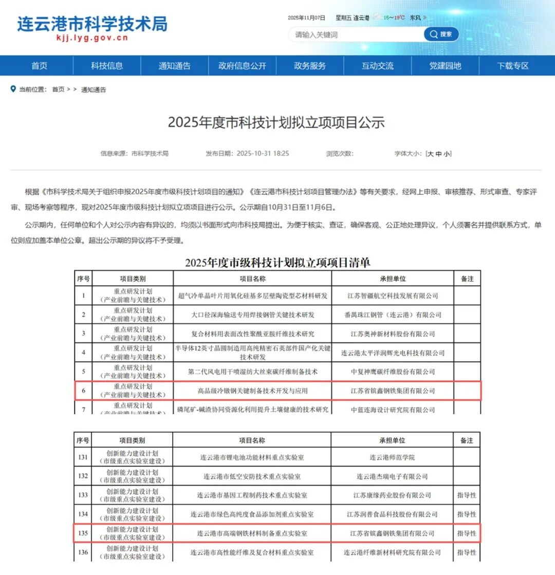 在省级荣誉落地之际,镔钢集团在市级科技项目与创新平台建设方面也取得新进展。《高品级冷镦钢关键制备技术开发与应用》成功入选连云港市重点研发计划(产业前瞻与关键技术类),项目聚焦高端冷镦钢的核心制备工艺,将进一步提升公司在高端紧固件用钢领域的市场竞争力;“连云港市高端钢铁材料制备重点实验室”的获批建设,将搭建集技术研发、成果转化、人才培养于一体的综合性创新平台,为公司持续突破关键核心技术提供有力支撑。